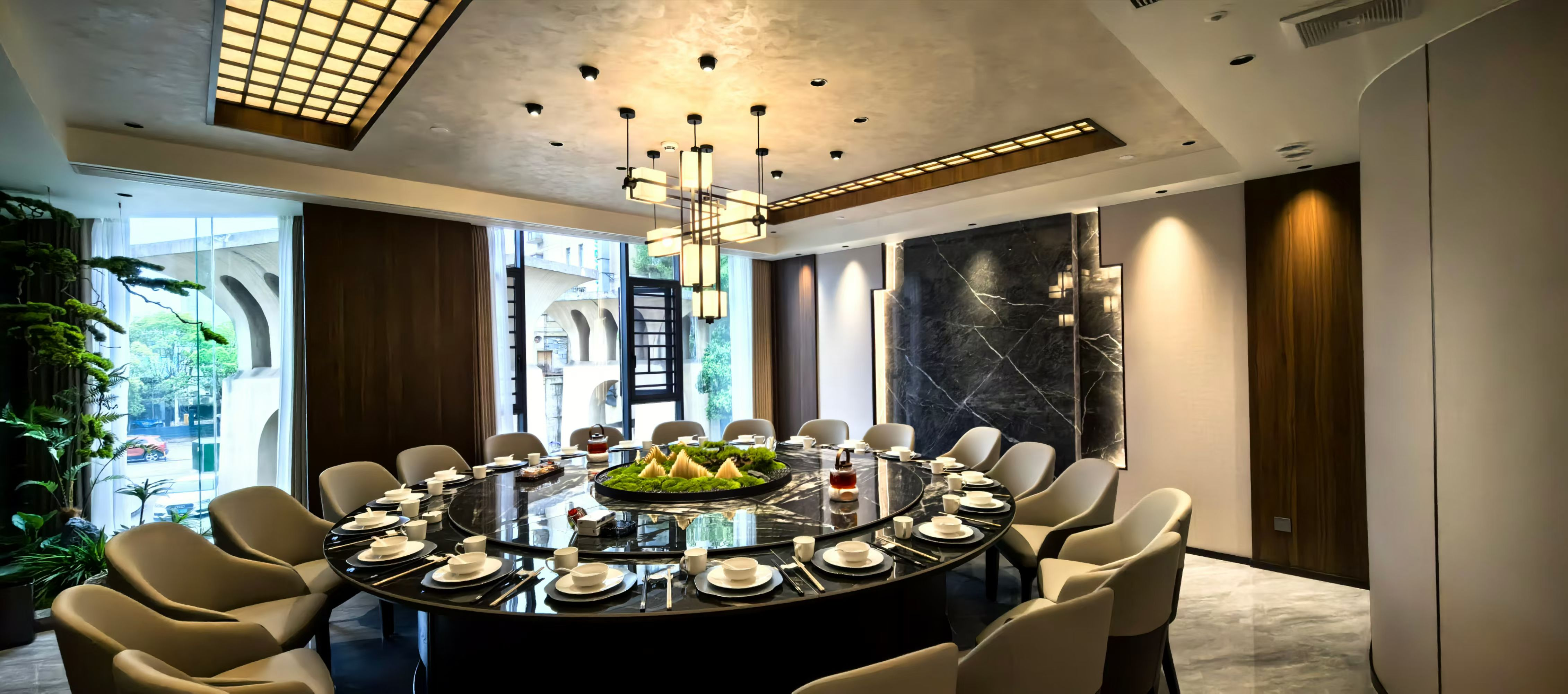 场景化设计赋能空间生命力:包厢的迎宾、就餐、洽谈、离场情景模式,宴会厅的一键式场景切换,这些设计并非简单的设备堆砌,而是对用户需求的深度洞察。例如,洽谈场景的灯光与音响效果的搭配,需要平衡商务氛围与舒适感,这种细节打磨让我们更理解“空间体验”的温度。